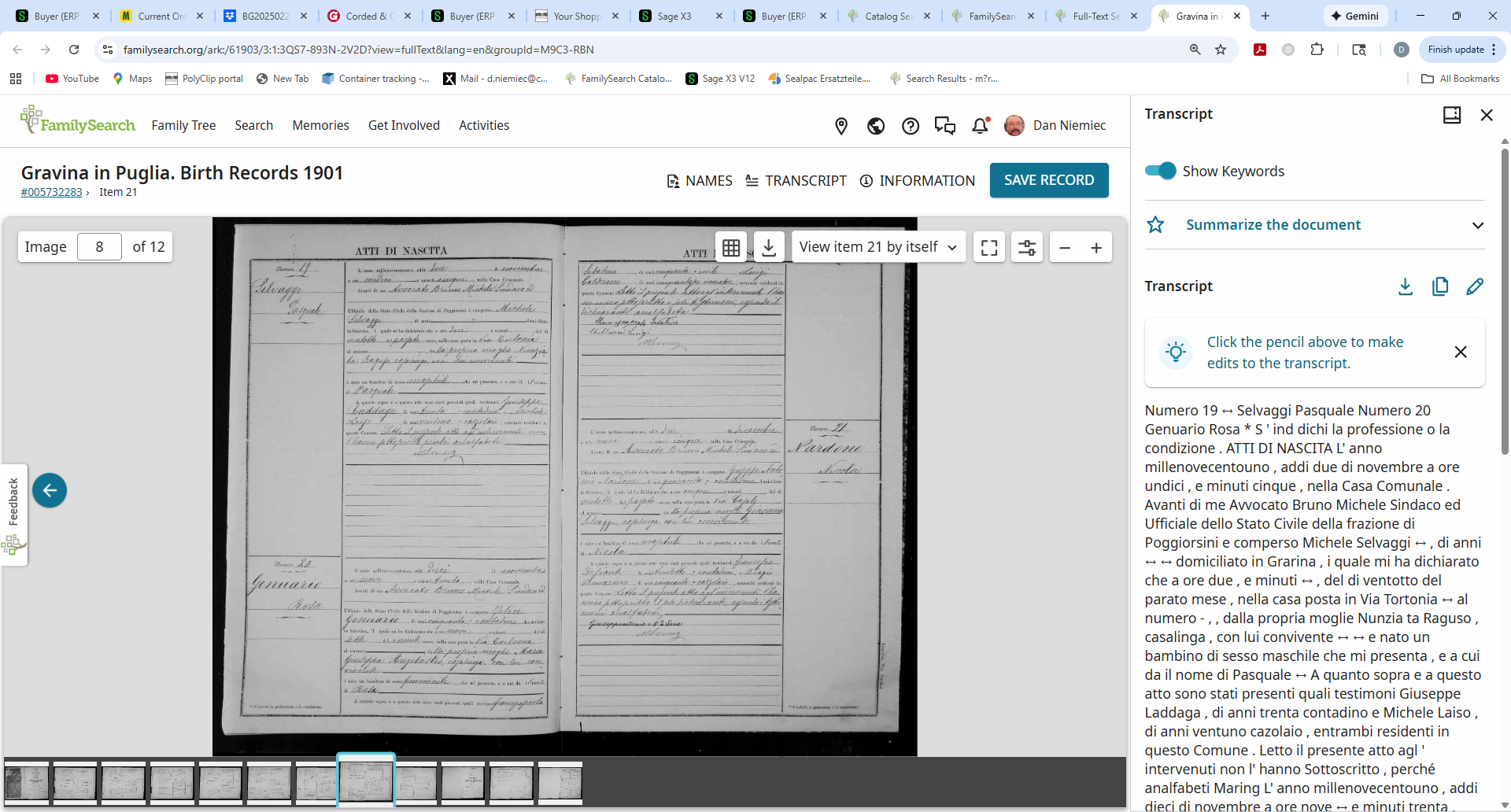 I was forced into trying this because of FamilySearch and the AI indexing that I have discussed in recent columns. FamilySearch ran the Bari Italy films/folders through AI but only 1809-1900. Since the records from 1901-1929 were filmed at a different archive, they were left out, even though the records are the same format and could have easily been run through the same AI programs.
