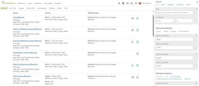 I will never ask you to skip looking at the actual records and just rely on the index, but now that the index has millions of additional records, you can do a lot more without becoming an Italian language expert. After you build the basic tree, you can go back to the Italian civil records and get more details and fill in the dates of birth, marriage and death.