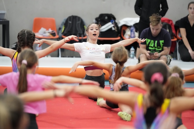 “Working with young fans has really expanded my heart because I can see myself in young aspirational gymnasts,” Campana says. “I try to teach them you don’t have to be mean to yourself, you should be patient and kind to yourself. I teach them mental strength, how to learn through play and most importantly how to access their fire within.”