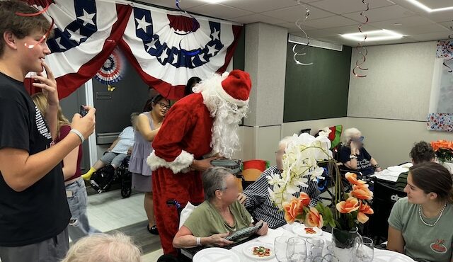 The group has spearheaded multiple projects at nursing homes near their school in northeastern New Jersey that allow students to connect with residents by doing arts and crafts, playing bingo, decorating cookies and more. They’ve also hosted special events for holidays, like a Fourth of July activity during which fireworks were painted onto T-shirts. Leone earned the honor of dressing up as Santa at a “Christmas in July” activity this year.